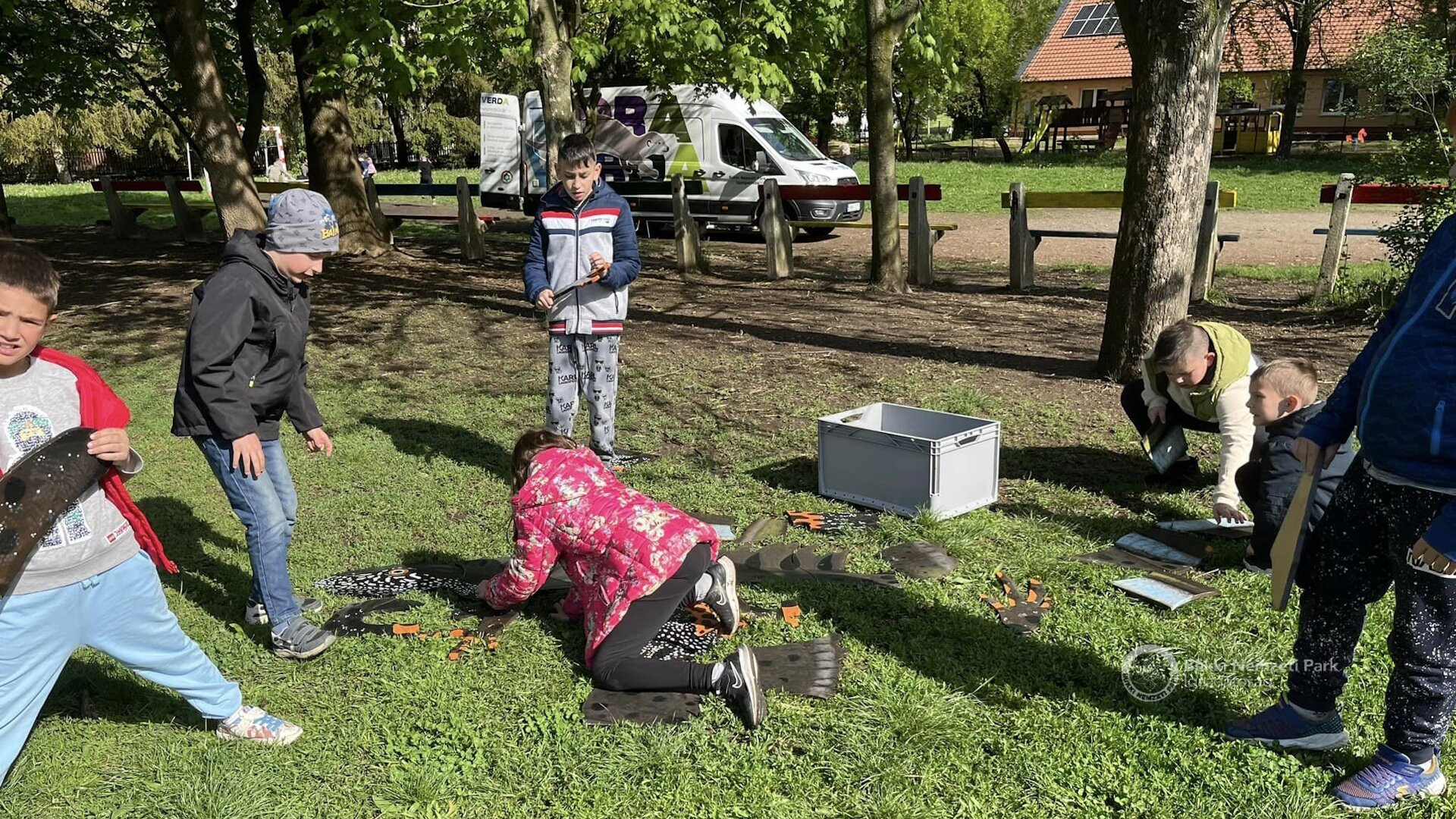 A csütörtöki napon immáron 22˚C-ban, napsütés mellett, Nógrád településén alsó tagozatos diákoknak, majd délután Balassagyarmaton óvodás csoportoknak tartottunk interaktív, természetismereti játékokat.