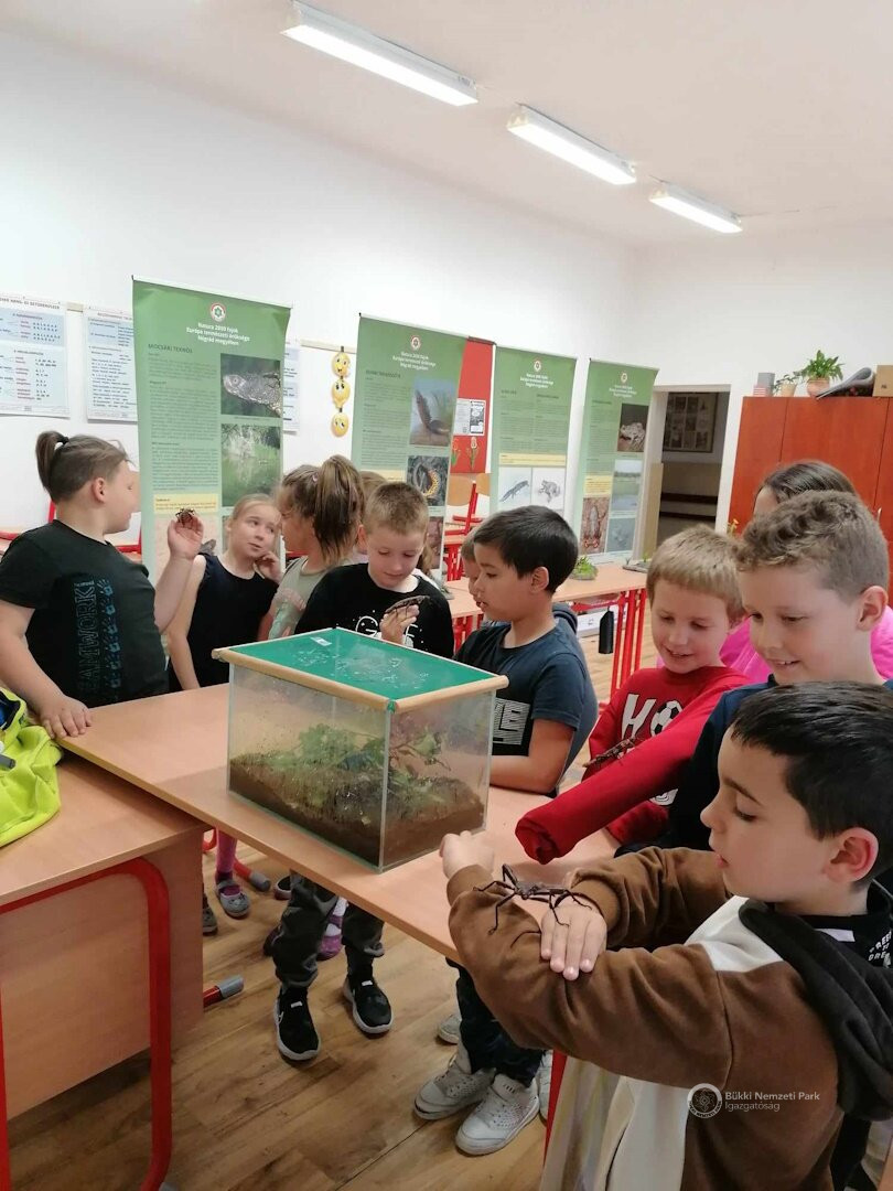 Pénteken számunkra is egy régi-új programmal érkeztünk a mátranováki általános iskolába. "Nemszeretem" állatok volt a fő téma, de kiderült, hogy a gyerekek igenis szeretik a kétéltűeket, hüllőket és az ízeltlábúakat. Azonban vannak félelmeik egyes fajokkal szemben és némelyik állatkától undorodnak. Miután kicsit elbeszélgettünk az ok-okozatokról és megértették, miért fontos, hogy nyálkás legyen egy béka, miért nem kell félni a siklóktól, mi a szerepük az ízeltlábúaknak a nagyvilágban és miért nem kell attól tartani, hogy kirándulás során "ránk fekszik egy medve", már elillantak a rossz érzések a nebulók kobakjából.