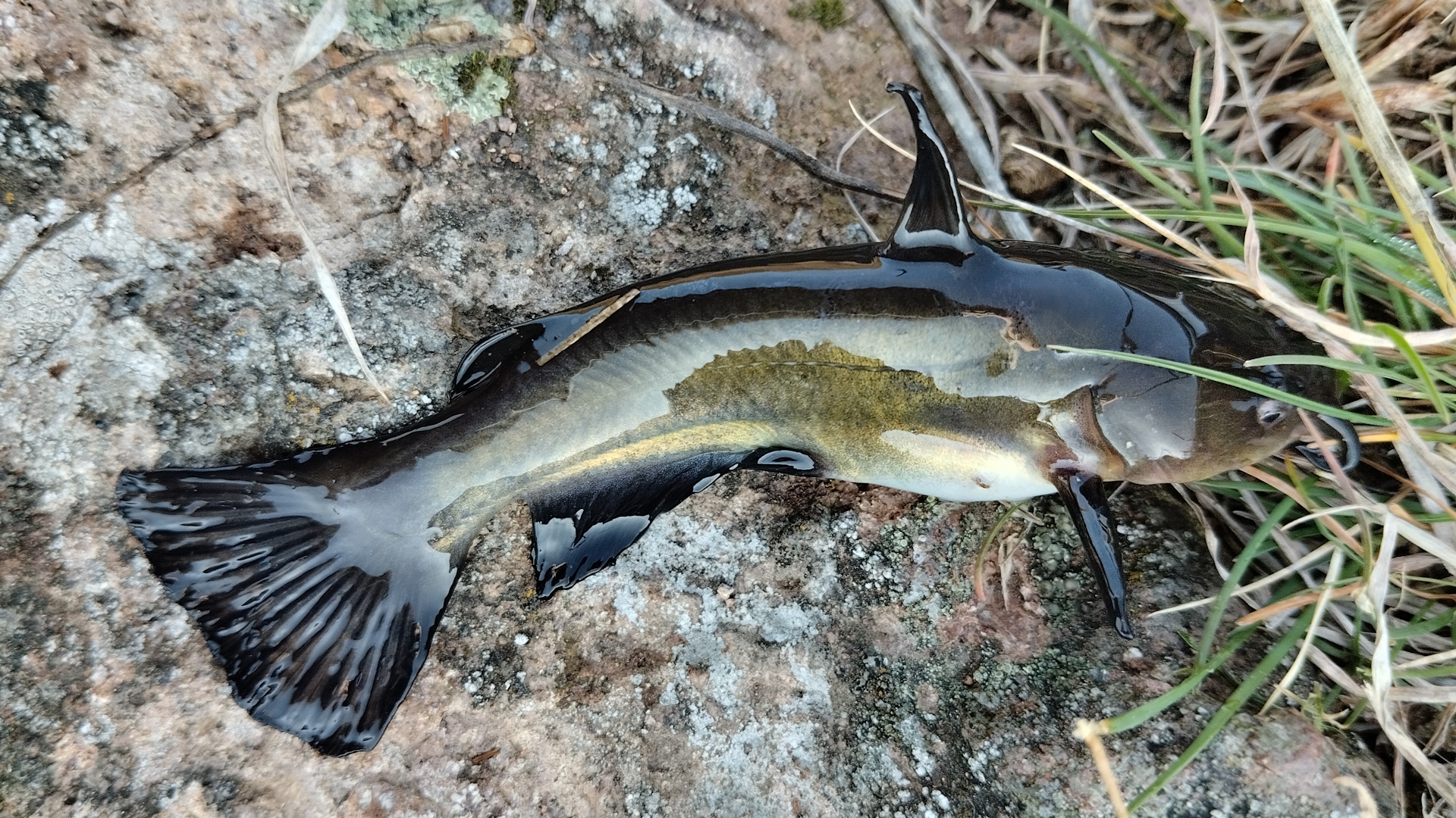 A kőbányatóból kifogott törpeharcsa (Ameiurus sp.). Fotó: Nagy Laura