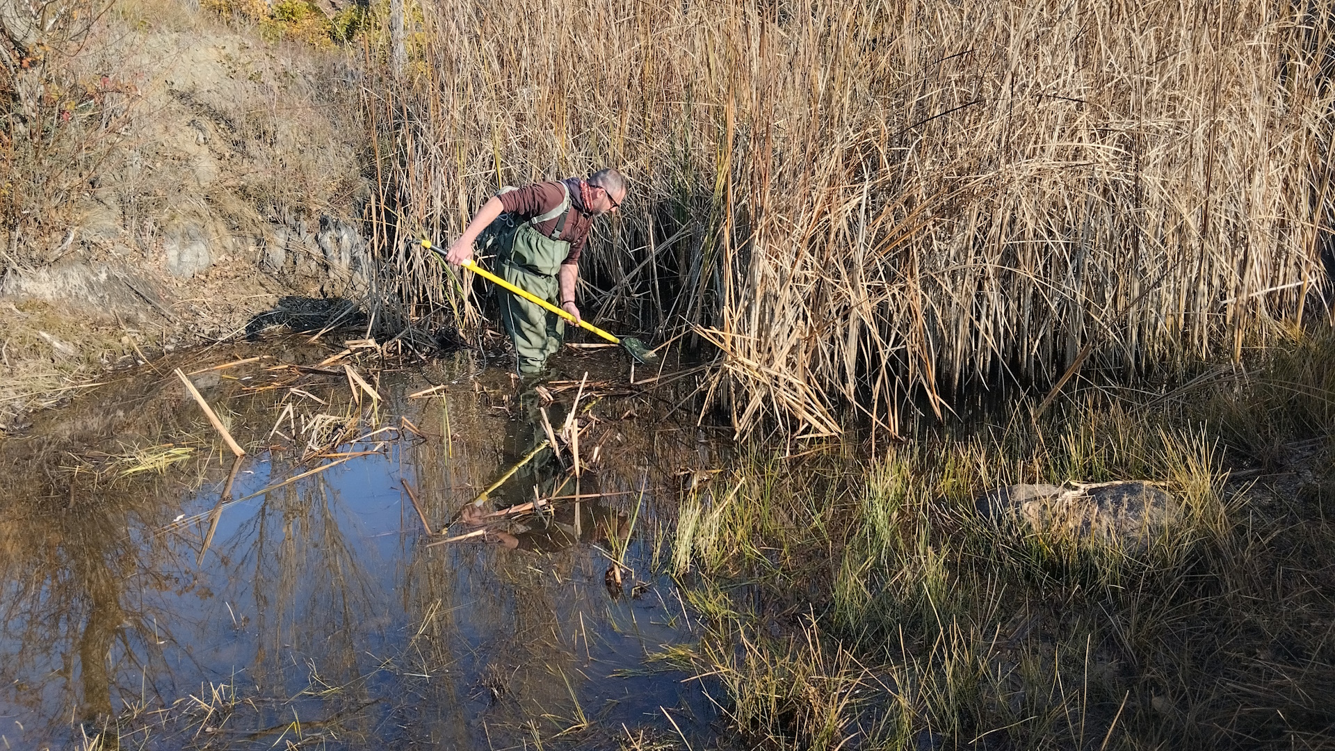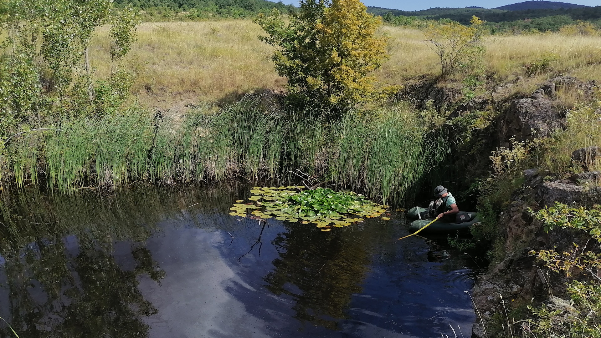 Évekkel ezelőtt fedeztük fel, hogy valaki(k) korábban törpeharcsát (Ameiurus sp.) és tündérrózsát (Nymphaea sp.) telepített(ek) a kőbányatóba.