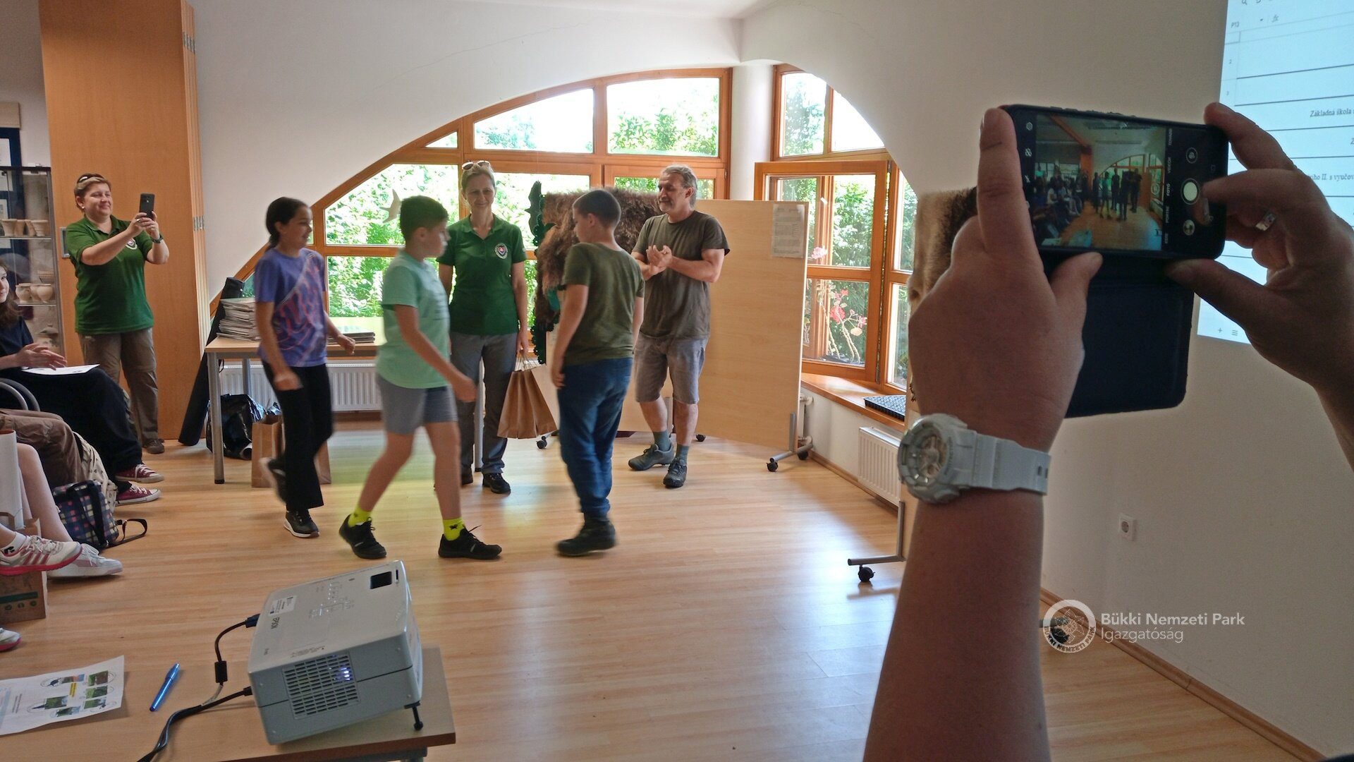 Természetvédelmi őreink előadásait Csaba Balázs zoológus tolmácsolta szlovákul, hogy a szlovák anyanyelvű diákok is megértsék az ismeretátadást. Fontos szabály volt, hogy csak a vetélkedőn résztvevő gyerekek jegyzetelhettek, a kísérő pedagógusok kissé lemaradva, távolabb követhették az eseményeket.