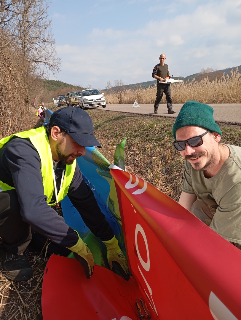 Ezt megelőzendő, március 5-én felkerekedtünk önkénteseinkkel és felépítettünk egy 150 méter hosszú terelőrendszert. A kétéltű terelő azt a célt szolgálja, hogy a telelőhelyekről érkező kétéltűeket megállítsa az út mentén, így azok nem tudnak átkelni. A terelőfal mögött rekedt békákat és gőtéket Természetvédelmi Őrszolgálatunk, valamint önkénteseink gyűjtik össze napról napra, a vonulás csúcsidőszakában akár naponta többször is, és vödrökben szállítják át az úton a szaporodóhelyre, így megelőzve a gázolásokat.