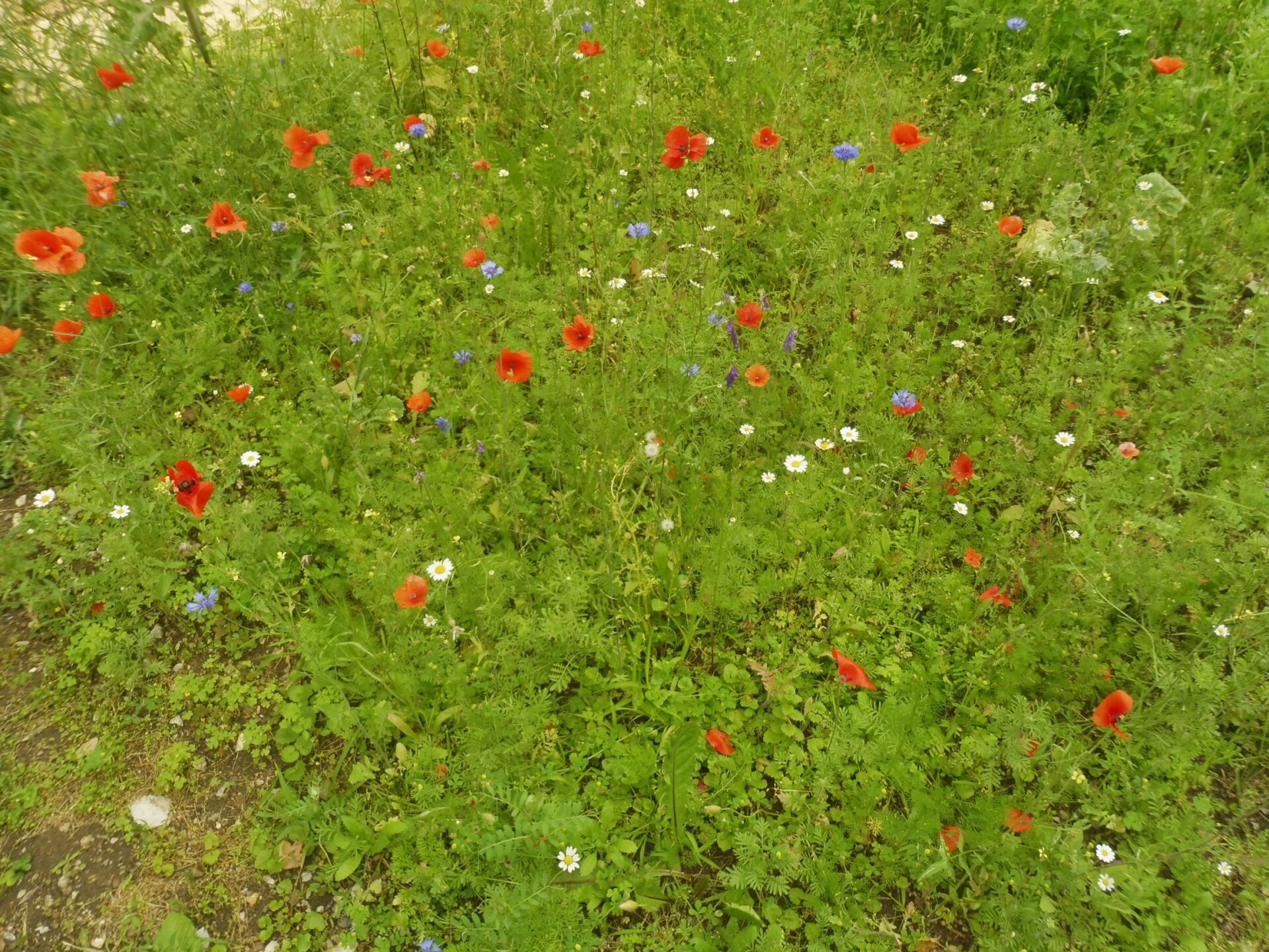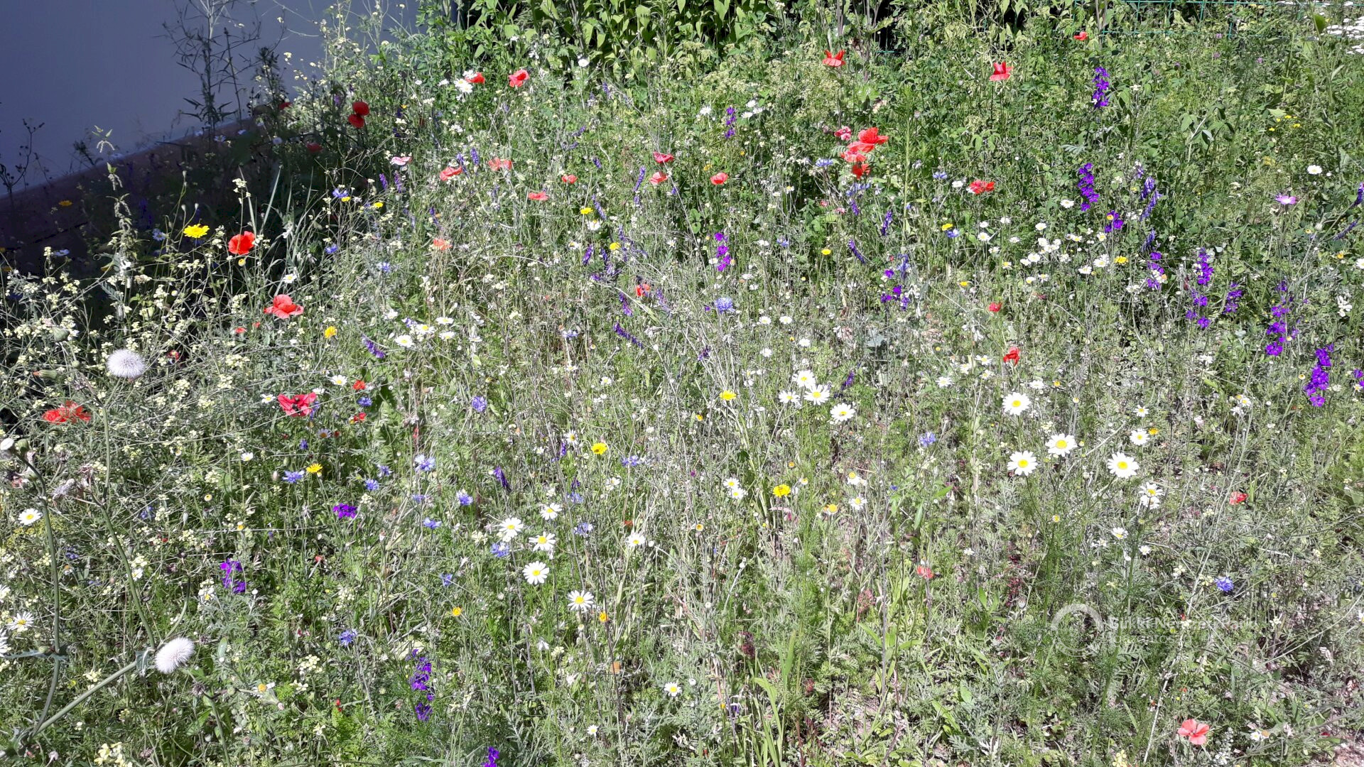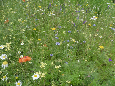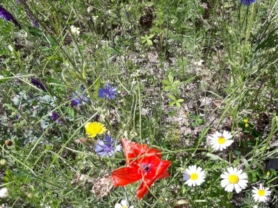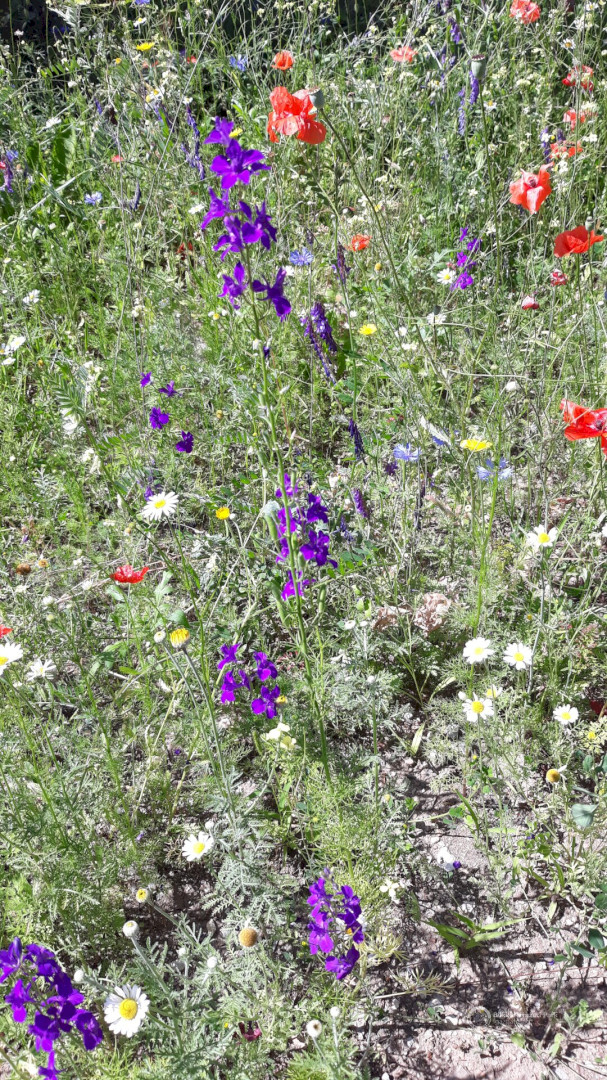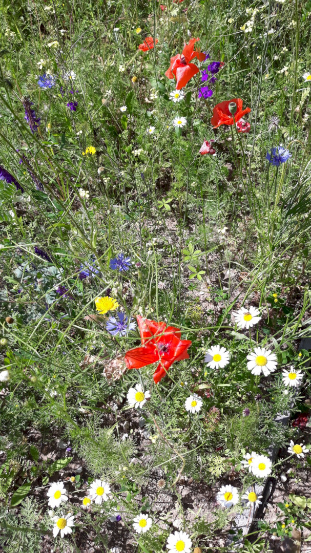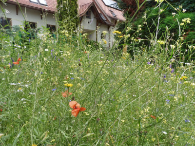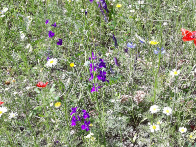 Kétféle magkeveréket vetettünk el áprilisban, egy 23 fajból álló egyéves magkeveréket, és egy 42 fajból álló, évelő növények magjait tartalmazó keveréket, melyeket a természetiskola területére jellemző kötött talajhoz ajánlott az előállító. A magokat a Vadvirág Világ-tól (Dorcadion Tanácsadó és Szolgáltató Kft.) szereztük be, mely Magyarországon őshonos növények szaporító képleteinek és egyedeinek kertészeti előállításával foglalkozik. Kereskedelmi forgalomban számos vadvirág magkeveréket lehet találni, azonban mindig győződjünk meg róla, hogy a vásárolt magok csak hazánkban honos növényekből származnak!