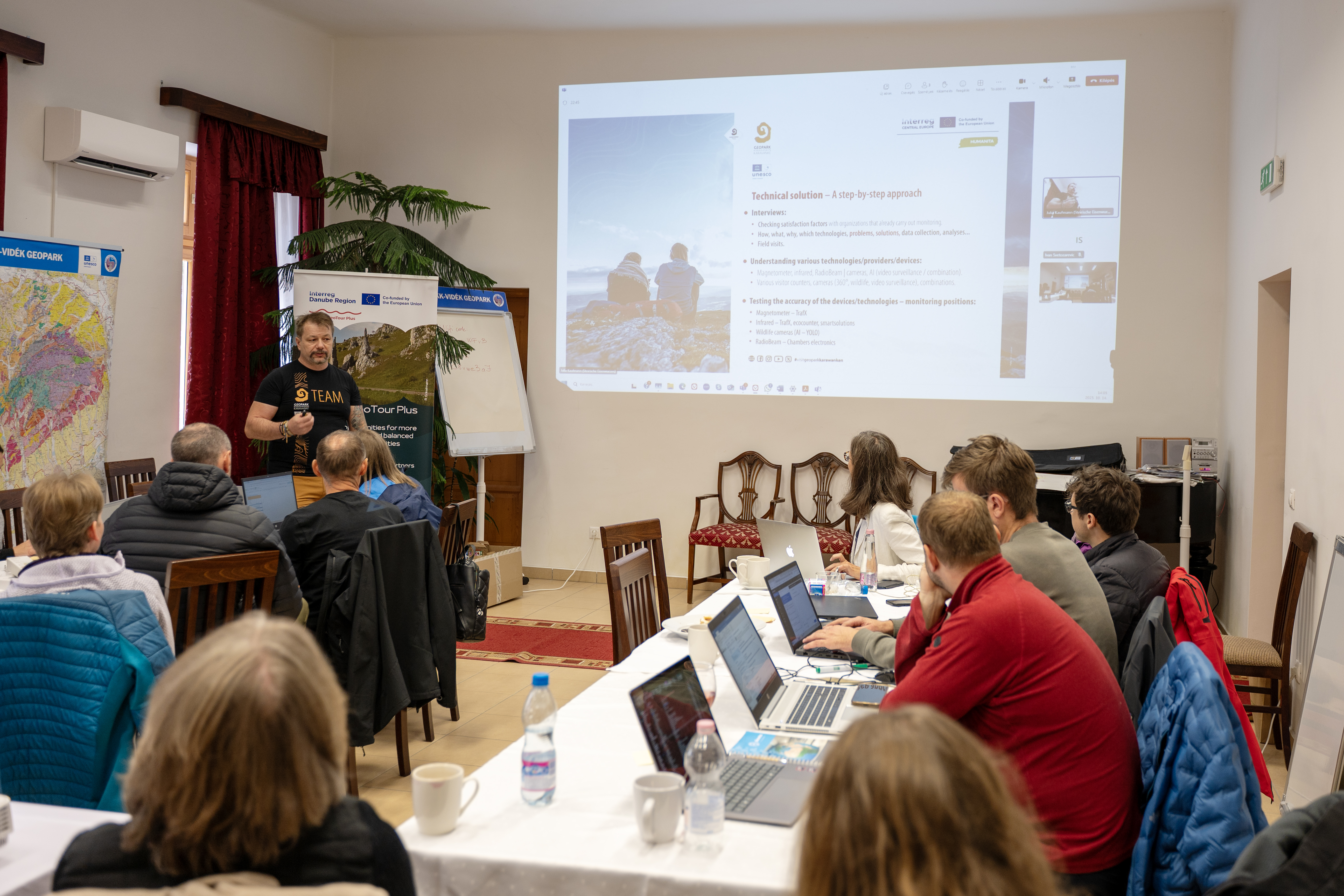 Das Danube GeoTour Plus- Projekt ist ein internationales, sowie transnationales Projekt im Rahmen des Interreg Danube Region-Programm. Dieses Projekt wird größtenteils von EU-Mitteln finanziert. Durch das Projekt soll die Vernetzung und Kommunikation unter Geoparks und Nationalparks entlang der Donau gestärkt werden. Bei dem Treffen ging es hauptsächlich darum, sich mit den anderen Parks auszutauschen, sich abzusprechen, wie bestimmte Probleme gelöst werden können oder Ideen zu sammeln, wie nachhaltiger Tourismus im eigenen Park gewährleistet werden kann. Teilnehmende Parks kamen zum Beispiel aus der Slowakei, aus Österreich und Slowenien, Deutschland, aber auch aus Ungarn selber.